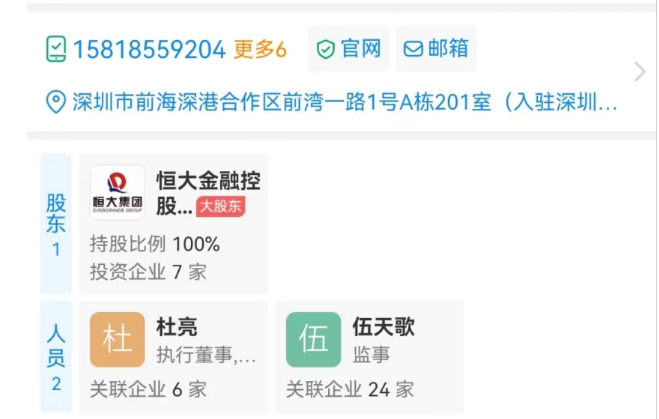 2015年在深圳成立,然后法人是杜亮,但是股权是100%属于恒大。